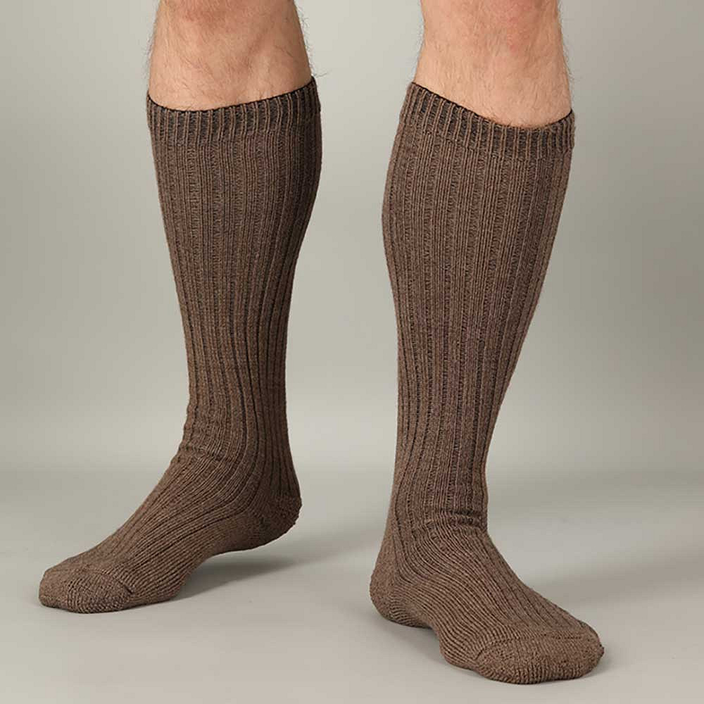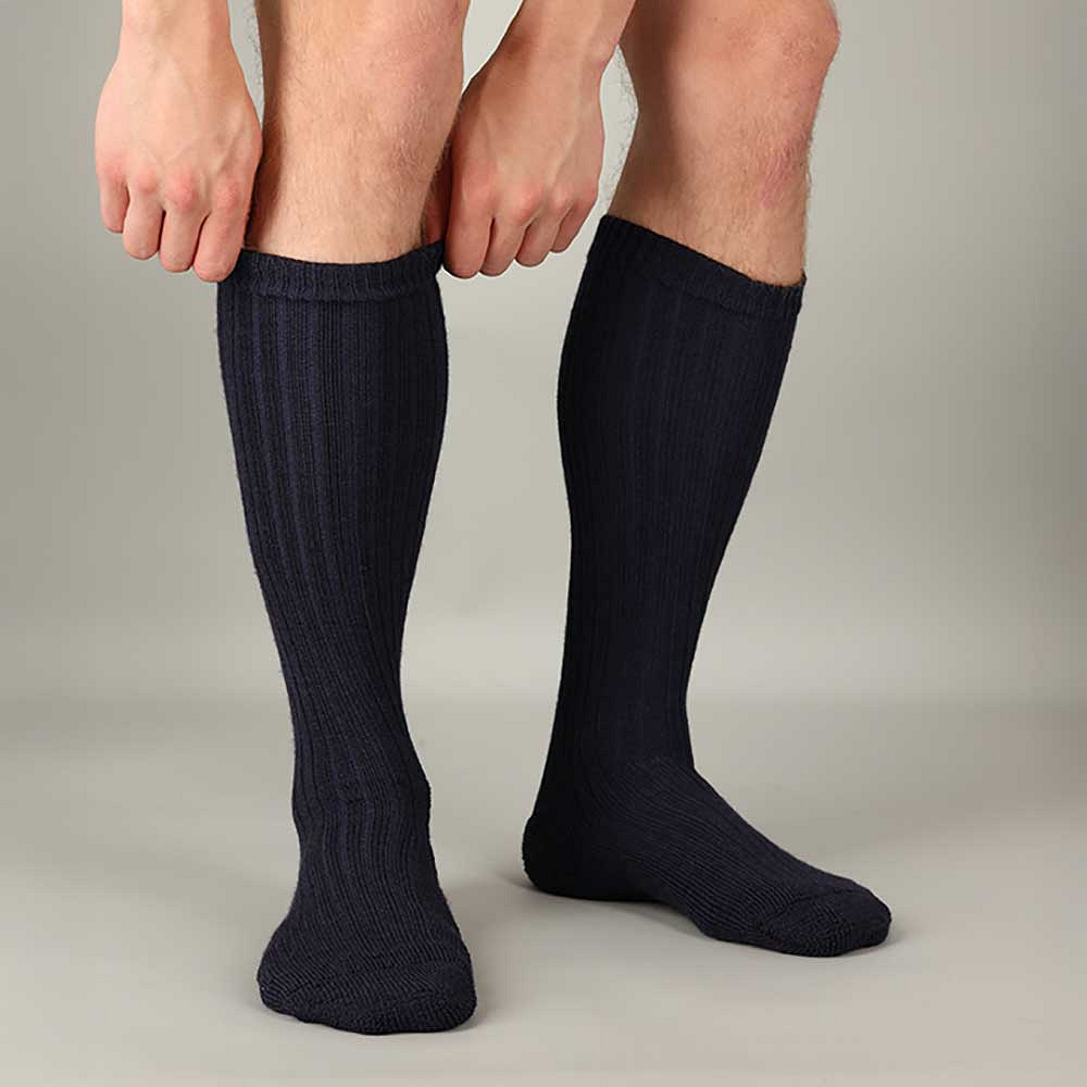 Warme en sterke wollen kniekousen met badstof voetbed.